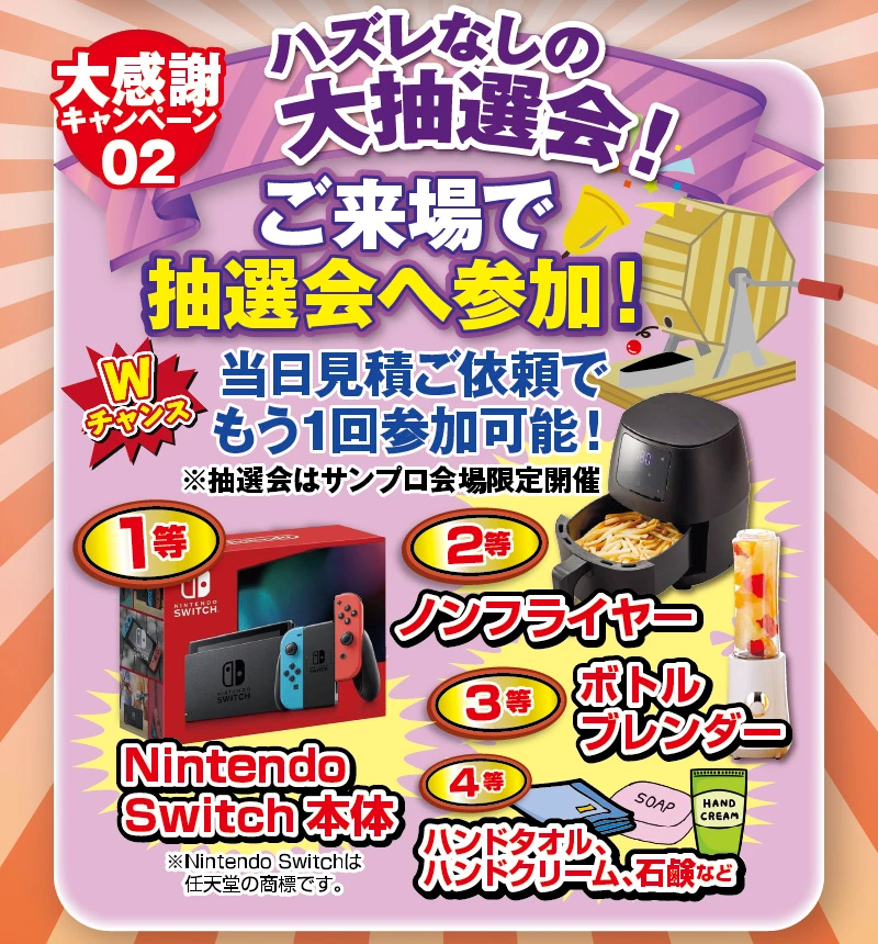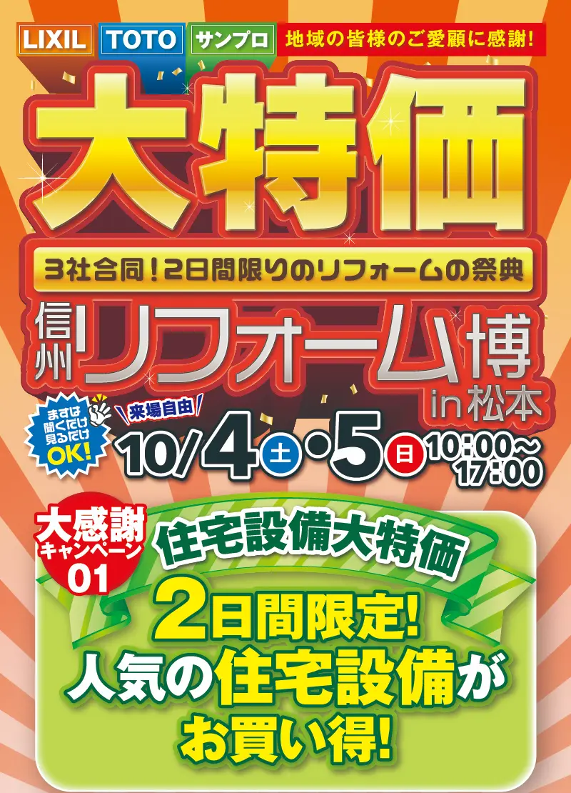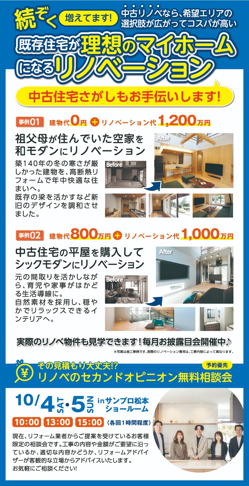 必須 ご来場希望日時 --- 必須 ご検討内容 住まいの総合的なリフォーム・リノベについてキッチン・トイレ・お風呂などの水廻りのリフォーム断熱や耐震などの住宅性能について内装・インテリアを変えたい土地探し・中古住宅探し売却・住み替えの相談住宅ローン・資金について少し先の家づくりのために情報収集したいその他 任意 セカンドオピニオン相談会 ---10/4(土) 10:0010/4(土) 13:0010/4(土) 15:0010/5(日) 10:0010/5(日) 13:0010/5(日) 15:00 必須 お名前 必須 ふりがな 必須 郵便番号 必須 ご住所 必須 メールアドレス 必須 電話番号 差支えなければ、以下の質問にもお答えください。 任意 工事完了希望時期について 時期検討中・これから検討すぐにでも1ケ月以内1ケ月~半年以内半年~1年以内1年~2年以内2年~3年以内3年以上先 任意 建物について 現在所有している(自己所有)現在所有している(親族所有)購入予定物件が決定している探している / 探しはじめ 任意 このイベントを知ったきっかけ InstagramfacebookホームページGoogle検索バナー広告新聞折込チラシポスト投函チラシ紹介その他 任意 ご質問・ご要望等 [ドメイン指定受信のお願い] sunpro36.co.jp のドメイン指定受信の設定をお願いいたします。 お申込みして頂いたお客様には、自動で受付確認メールを送信しております。受付確認メールを受信されていないお客様は、受信設定により弊社からのメールを受信拒否している恐れがございますので、ご確認下さい。特にキャリアメールは、キャリアによって複数の受信設定がございますので、事前にご確認お願いいたします。 このまま進むことで、当社の個人情報取扱方針にご同意いただいたものとしてお手続きを承ります。 内容をご確認のうえ、よろしければボタンを押してお進みください。 ありがとうございます。メッセージは送信されました。 15分以内に確認用の自動返信メールが届きます。 メールが届かない場合は、メールアドレスが誤っているか、確認メールが迷惑メールフォルダ等に振り分けられている、ドメイン指定で拒否されている可能性がありますので、再度ご確認をお願いいたします。 また、ご使用の端末/メールシステムの空き容量不足により、メールを受信できない場合もございます。その際は空き容量の確保をお願いいたします。 よろしくお願いいたします。 閉じる